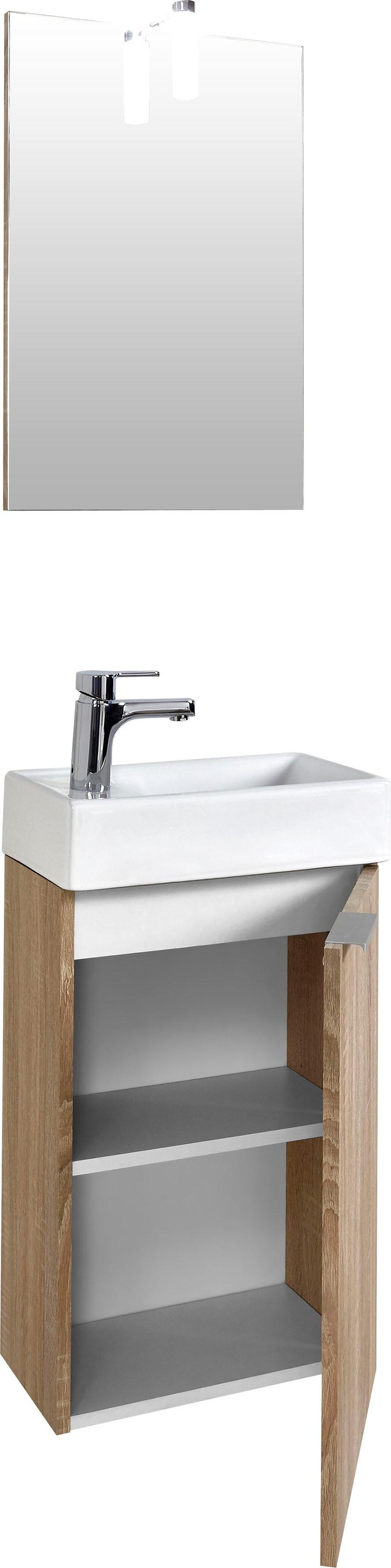 Planetmöbel badmöbel set waschtisch + waschbecken + spiegelschrank gäste bad wc (sonoma eiche). Badezimmermöbel sets für gäste billig einkaufen wc. Gäste wc badmöbel set, wt waschbecken mit unterschrank, schon vormontiert ! Durch die geräumigen fächer in der innenseite des schranks. Weiß alpin, mit 1x armaturbohrung, als rechts links variante verwendbar, h/b/t: