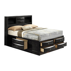 Twin xl platform bed with bookcase headboard 3 storage drawers. The bed itself comes with a king bookcase the headboard with shelves king is a storage headboard only. Product titlebowery hill queen bookcase platform storage bed. Bookcase headboards like this beautiful, yet functional, the artisan headboard with beveled mirror is a popular bedroom option providing ample light for reading in bed, shelves and storage compartments. Furniture of america kini contemporary espresso solid wood storage bed.