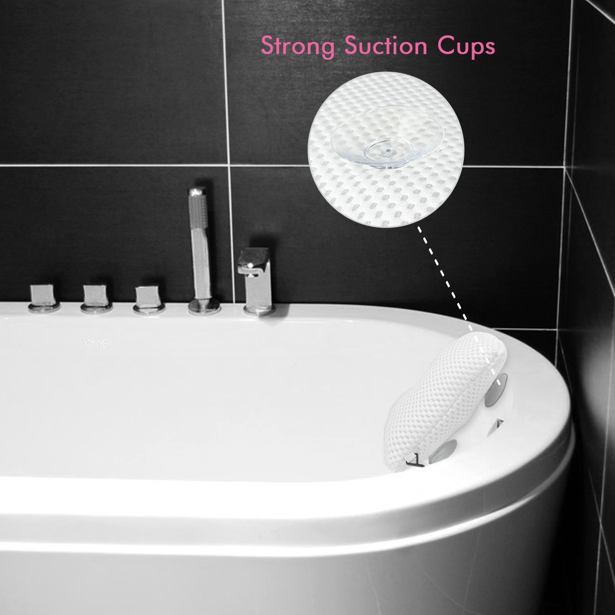 Suction cups to secure pillow to tub.